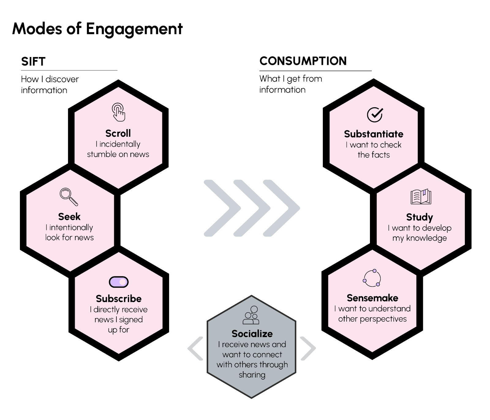 As younger and older readers alike face similar challenges when navigating the current information environment, we believe there is an opportunity to align with how most audiences encounter and consume news. Modes of Engagement is a way of attracting younger consumers without alienating traditional or older readers.